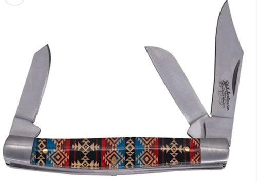 Justin Stockman Acrylic Blue & Red Aztec 3 Blade Pocket Knife