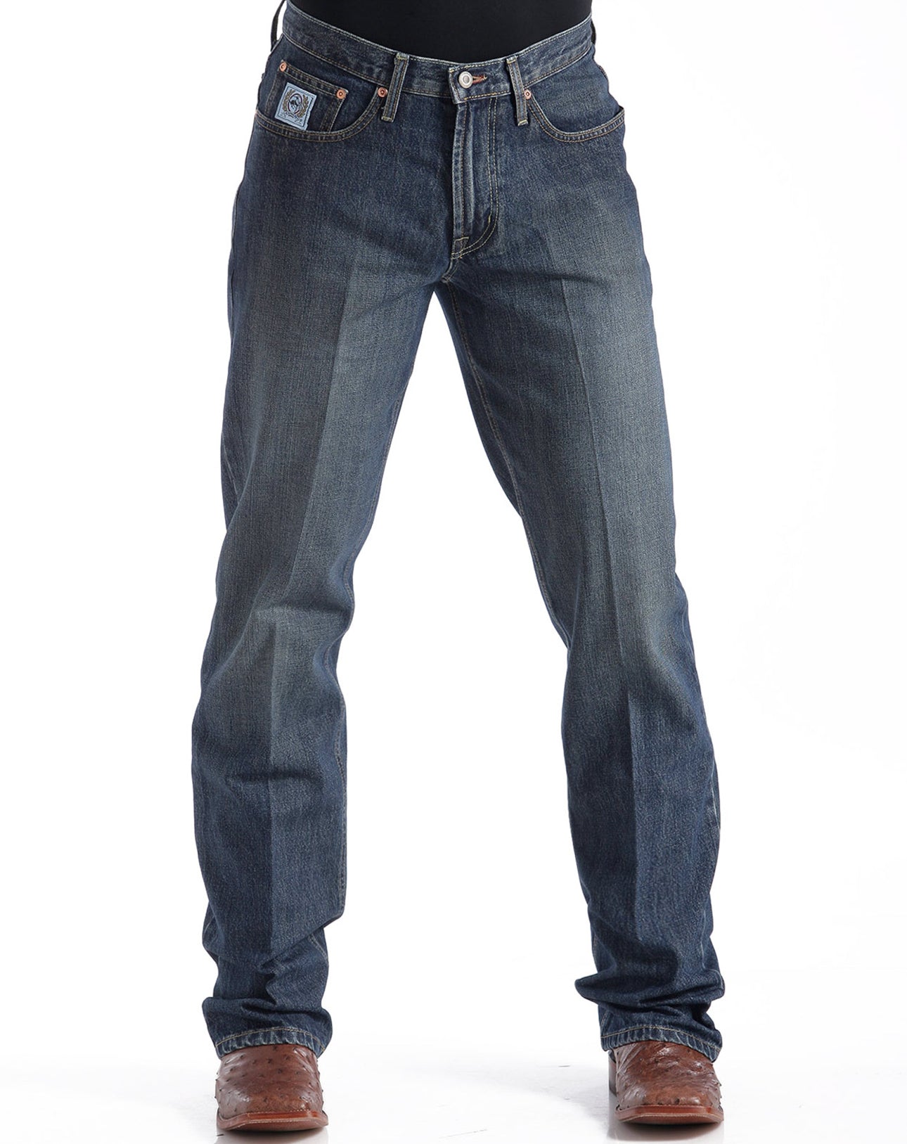 Dark stonewash, Sandblasted, 14.25 oz. denim. Also available in a lighter stonewash, dark stonewash tint and dark stonewash. CINCH men's jeans are tough and durable for the rodeo arena or life on the ranch, yet fashionable enough for a night on the town. Style: MB92834013.