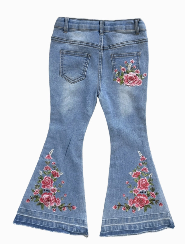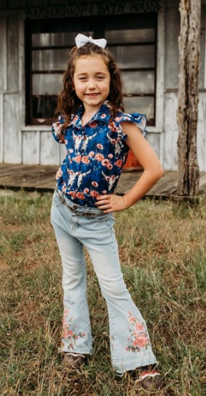 Western style with a floral twist! These Floral Boot Flare Denim Jeans combine rustic charm with a playful flare! They are comfy, durable and designed to make your little cowgirl stand out! A must have in your girls wardrobe!