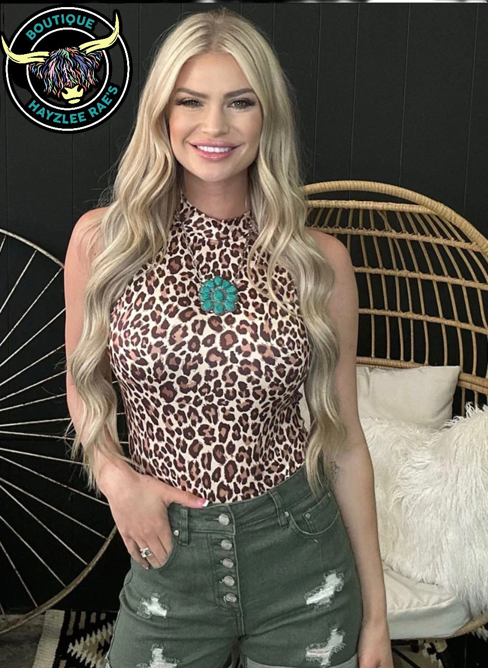 Roll in style with this wild High Roller bodysuit! Featuring a sleek, leopard print tank top style with a high neck collar, this bodysuit is the perfect way to make a statement. Slip it on for a night out and you'll be the cat's meow!