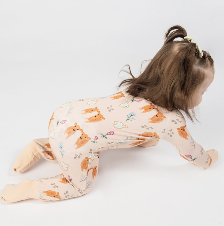 Jersey Calves Baby Bamboo Zippy - the ultimate comfort for your little one! Made with a double zipper, this one piece zippy features fold over mittens and foot cuffs to keep your baby cozy. Crafted with bamboo, it's super soft and stretchy for maximum comfort for either daytime or nighttime!