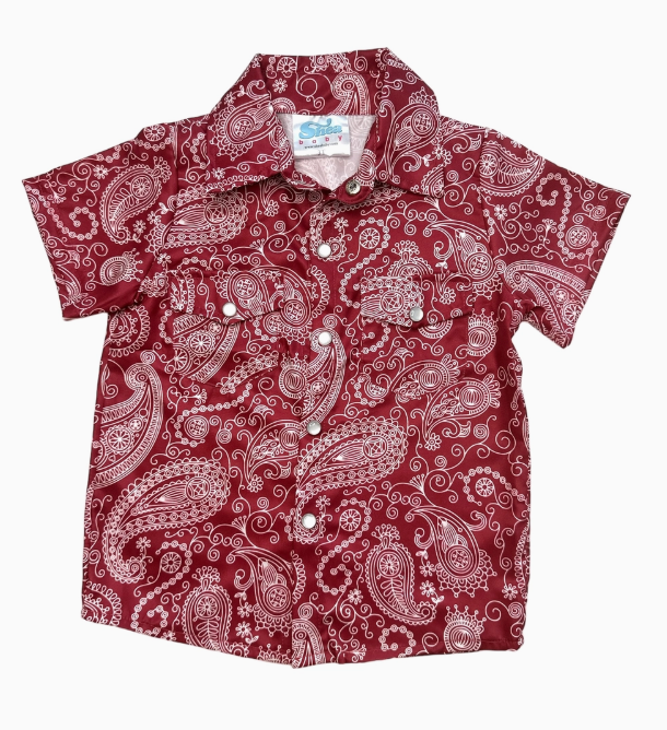 Maroon Paisley Ss Pearl Snap