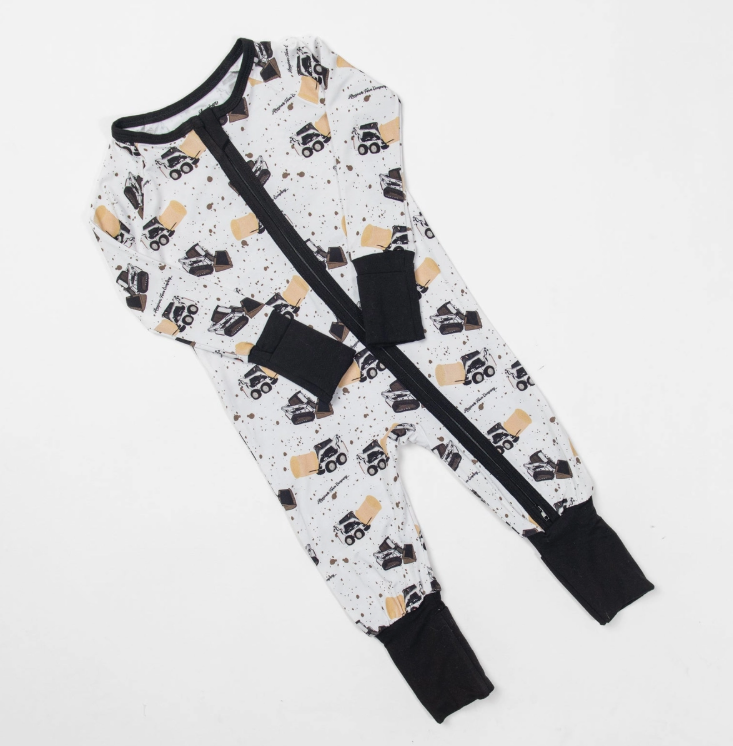 Introducing Skid Loader Baby Bamboo Zippy - the ultimate comfort for your little one! Made with a double zipper, this one piece zippy features fold over mittens and foot cuffs to keep your baby cozy. Crafted with bamboo, it's super soft and stretchy for maximum comfort for either daytime or nighttime!